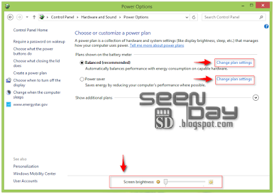 Nah, Untuk mengatur pencahayaan atau kecerahan kita bisa masuk pada menu ini, buka salah satu Profil Daya (yang sedan kita Gunakan) denan mengklik “Change plan Settings” (lihat gambar diatas).