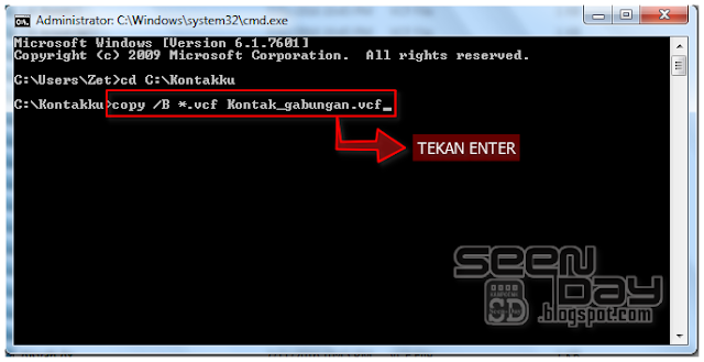 CARA MENGGABUNGKAN FILE .VCF DENGAN CMD :