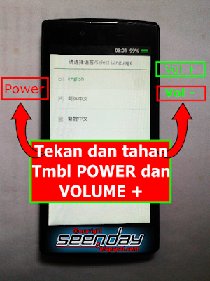4. Sebelum masuk ke recovery mode Oppo Neo 3 R 831k ini, akan tampil tiga opsi bahasa (Select Laguage) yang akan digunakan, pilih bahasa yang anda mengerti, kalo saya pilih ENGLISH saja.