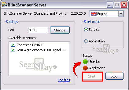 Jika sudah selesai jalankan service pada PC server denganb klik tombol “Start” agar bisa sharing scanner, maka program akan berjalan pada system try dan biarkan berjalan.