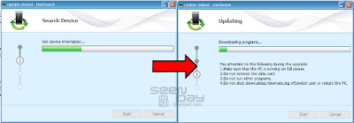 4. Segera proses akan berjalan, diawali dari pencarian informasi modem, lalu pemutakhiran software dan driver modem, hati-hati jangan menyentuh sambungan modem karena takut sambungan terganggu.