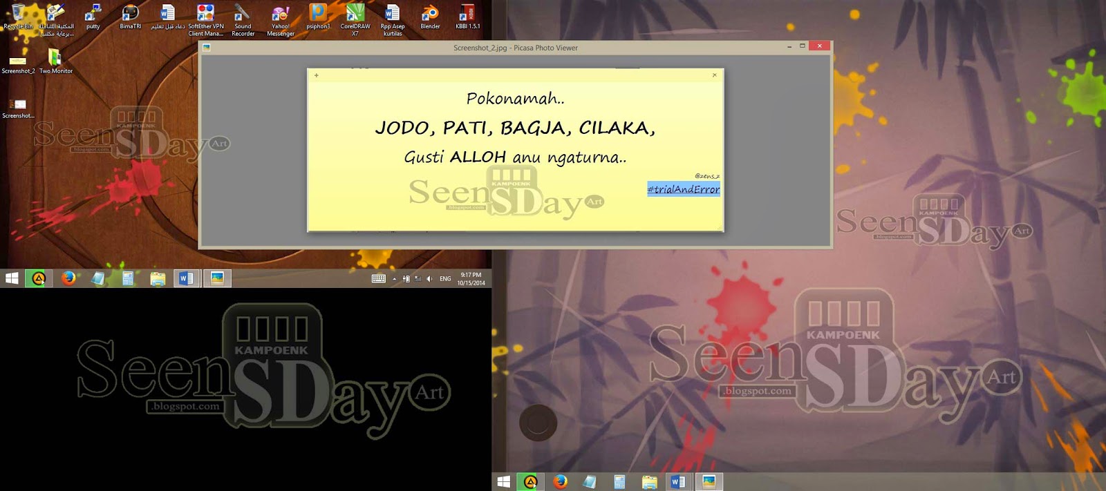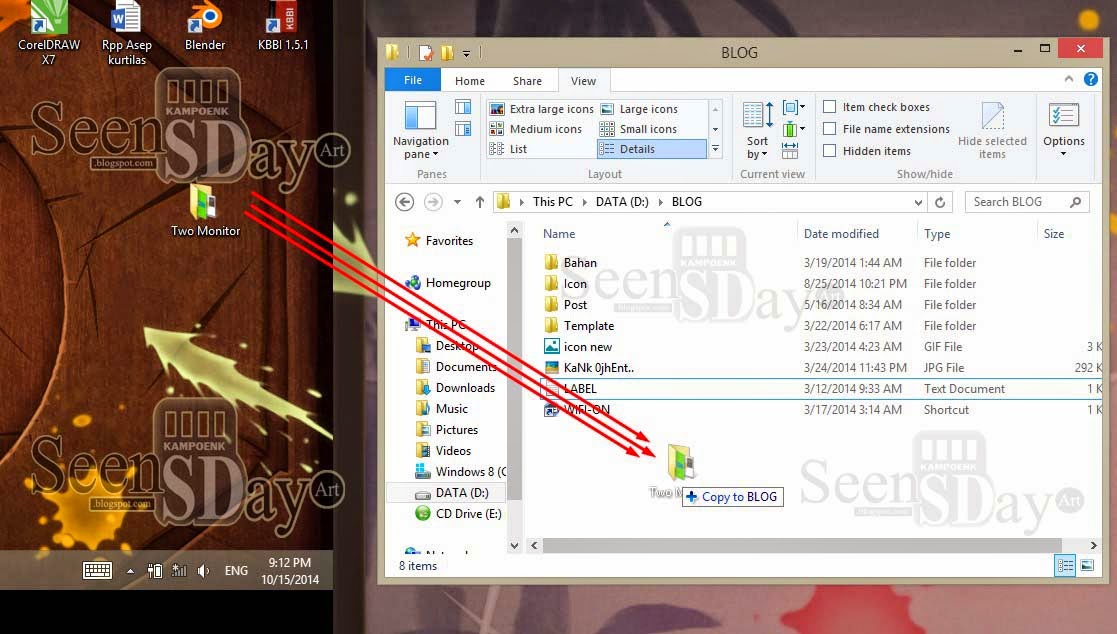 Nah sampai sini sudah selesai, sekarang kita bisa bekerja lebih efektif, nonton lebih puas dan apa aja dengan dual layar, oya cara copy paste file cukup dengan Drag and Drop dari monitor satu ke moitor dua, atau sebaliknya: