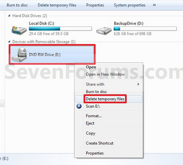Untuk mengatasi agar pesan tersebut tidak muncul lagi anda harus mengapus file-file yanga ada dalam direktori folder “BURN” tersebut, bisa dengan cara manual, yaitu dengan cara masuk pada folder diatas kemudian langsung menghapusnya, atau dengan cara lain. yaitu dengan cara masuk pada MyComputer, dimana akan tampil beberapa hard drive termasuk DVD roomnya. klik kanan pada dvd room tersebut dan pilih “delete temporary Files”