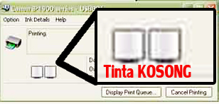 Tidak usah panik, biarkan saja tinta pada indikator printer menampilkan keadaankosong atau hampir habis, yang penting kita isi tinta box tinta atau catridge secara rutin, agar tinta tidak kekeringan.